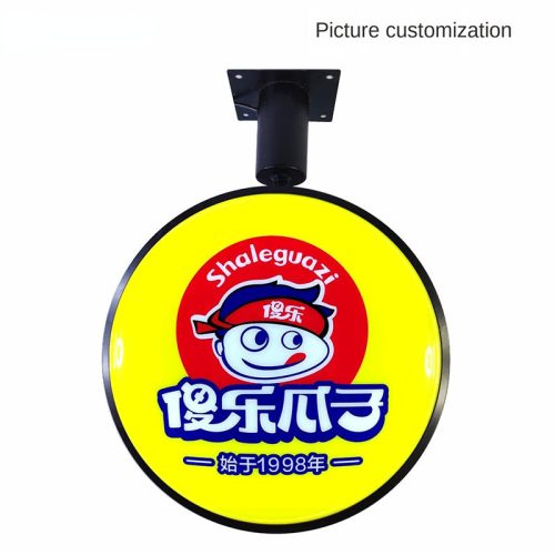 Outdoor Iron LED Acrylic Circular Double-sided Blister Rotating Advertising Light Box Hanging Creative Signs
